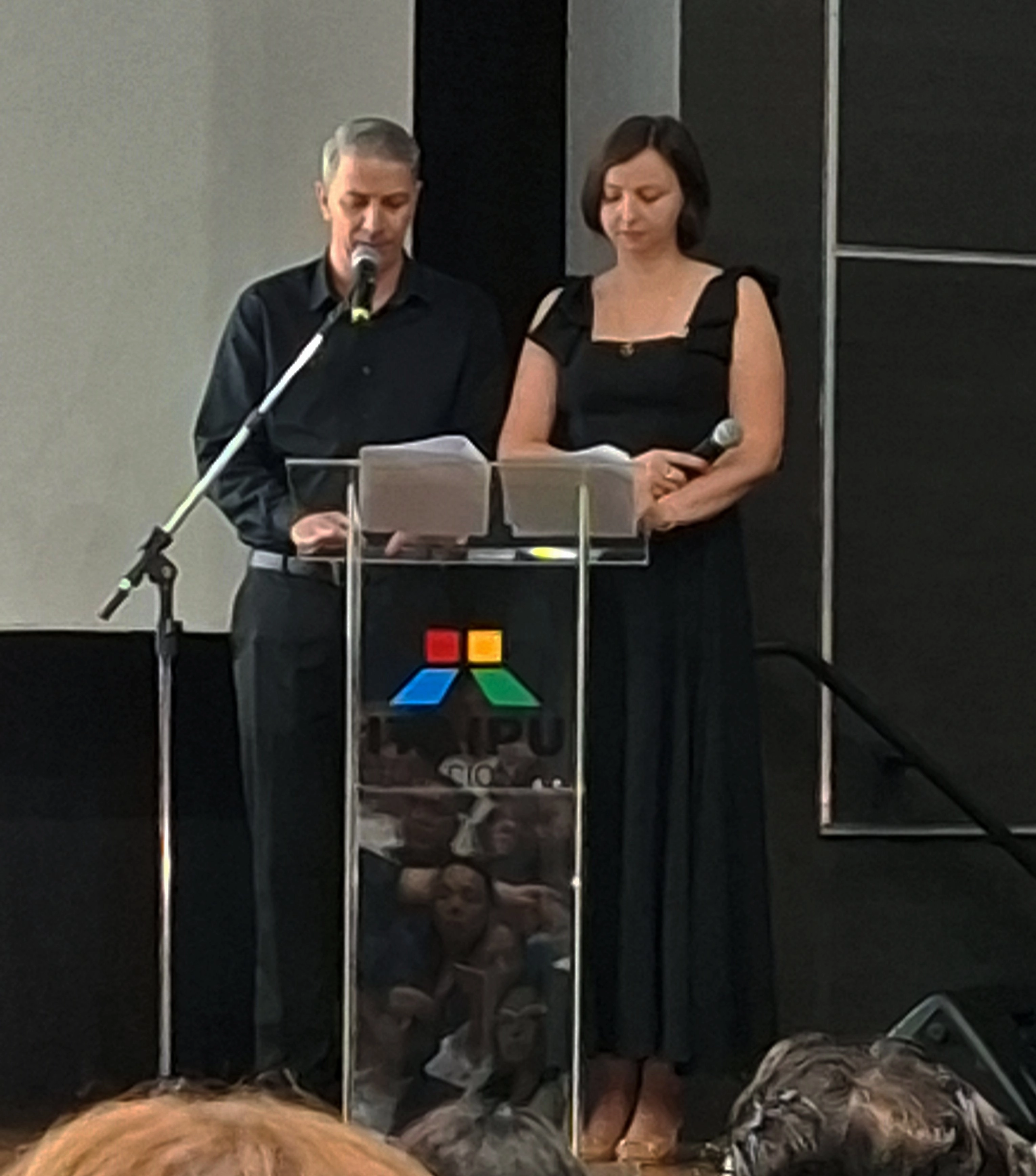 Os mestres de cerimônia e locutores do Programa Fala Paraná, Magno Pinelli e Adrielle de Oliveira