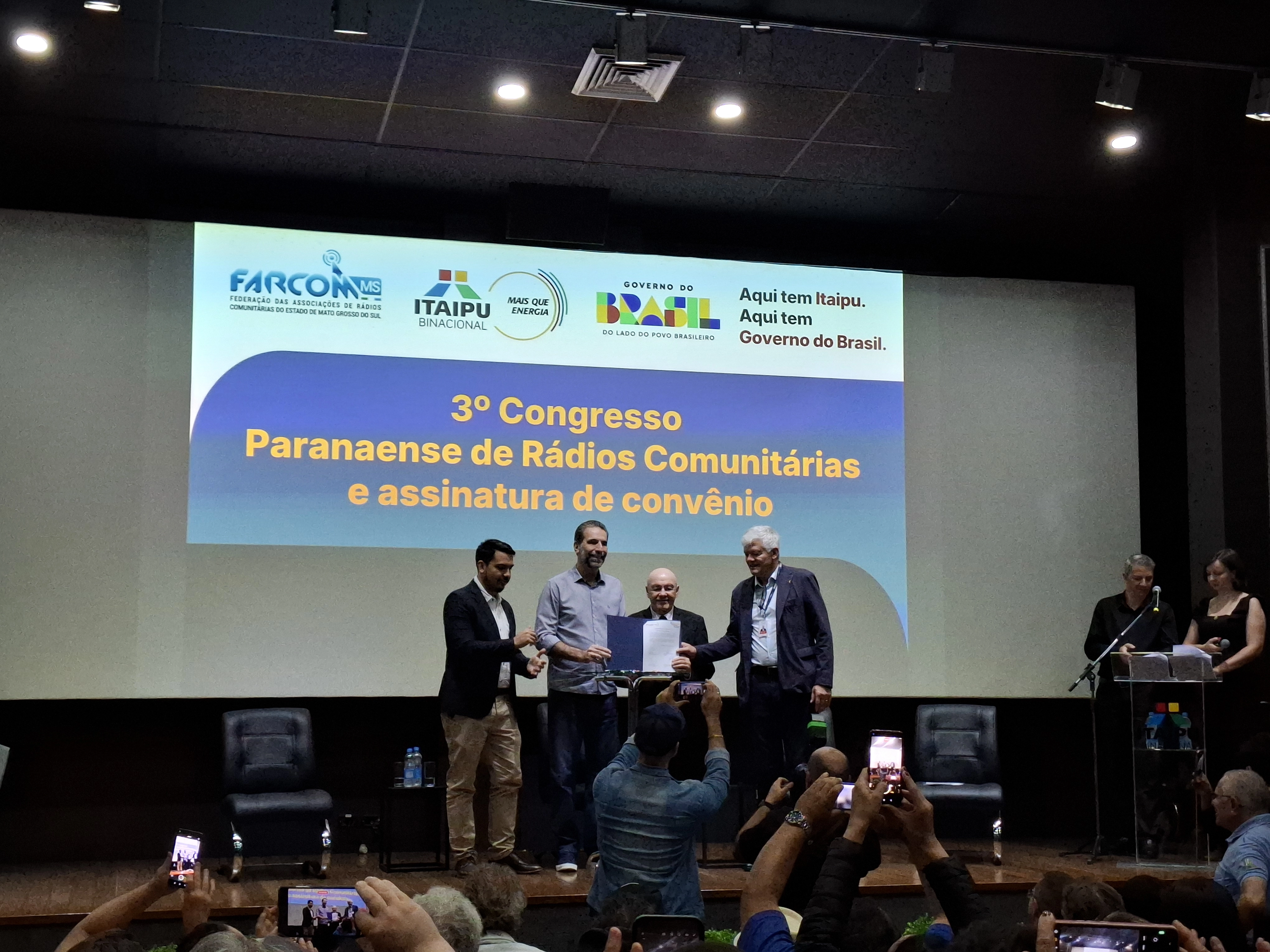 Durante o 3º Congresso Paranaense de Rádios Comunitárias, realizado no último sábado (1) em Foz do Iguaçu, a Itaipu Binacional firmou convênio com a Federação das Associações de Rádios Comunitárias do Estado do Paraná (Farcom-PR), para aquisição de equipamentos, produção e veiculação de programas sobre sustentabilidade e cursos de locução para jovens de 15 a 29 anos. O repasse da Itaipu será de R$ 4,646 milhões, com vigência do convênio até o início de 2027.
